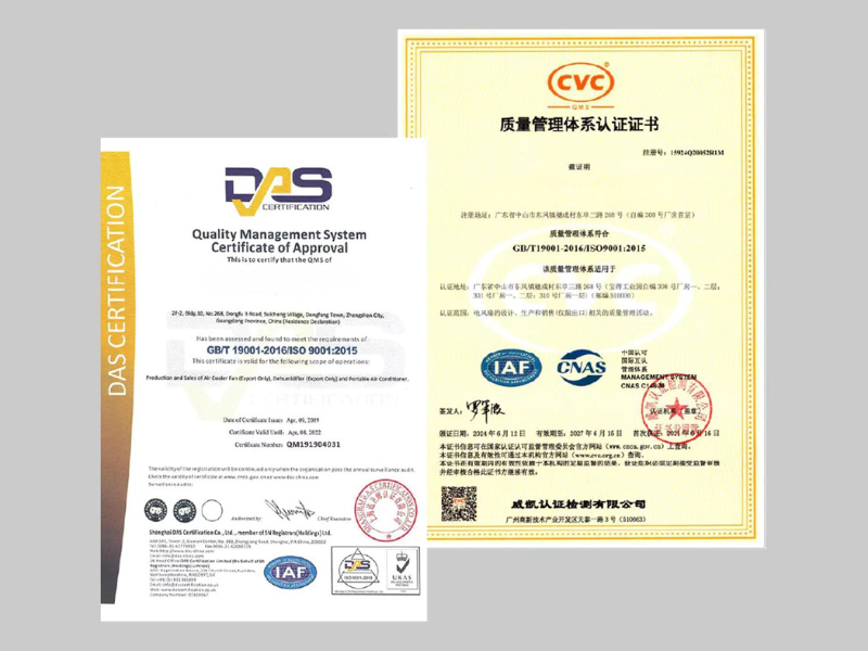 Each fan goes through strict inspections including motor testing, balance testing, noise level, and safety performance. All our products comply with international standards.